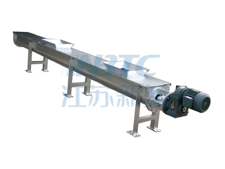 螺旋輸送機(jī)在輸送形式上分為有軸螺旋輸送機(jī)和無(wú)軸螺旋輸送機(jī)兩種,在外型上分為U型螺旋輸送機(jī)和管式螺旋輸送機(jī)。有軸螺旋輸送機(jī)適用于無(wú)粘性的干粉物料和小顆粒物料,而無(wú)軸螺旋輸送機(jī)適合輸送機(jī)由粘性的和易纏繞的物料。(例如:污泥、生物質(zhì)、垃圾等)螺旋輸送機(jī)的工作原理是旋轉(zhuǎn)的螺旋葉片將物料推移而進(jìn)行螺旋輸送機(jī)輸送,使物料不與螺旋輸送機(jī)葉片一起旋轉(zhuǎn)的力是物料自身重量和螺旋輸送機(jī)機(jī)殼對(duì)物料的摩擦阻力。廣泛應(yīng)于粉體和細(xì)小顆粒行業(yè)。