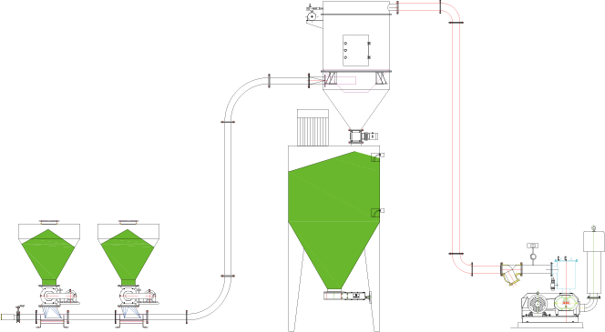 該輸送系統(tǒng)氣源形式為羅茨風(fēng)機(jī)或水環(huán)真空泵,氣源壓力20~50KPa。